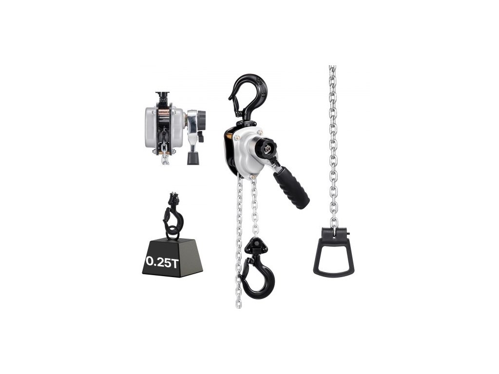 Ruční pákový řetězový kladkostroj VEVOR, nosnost 1/4T 250 kg, pro vysoké zatížení, řetěz z legované oceli 3M Lift G80 s dvojitou západkovou mechanickou brzdou, háky otočné o 360°, pro sklady, stavby, garáže