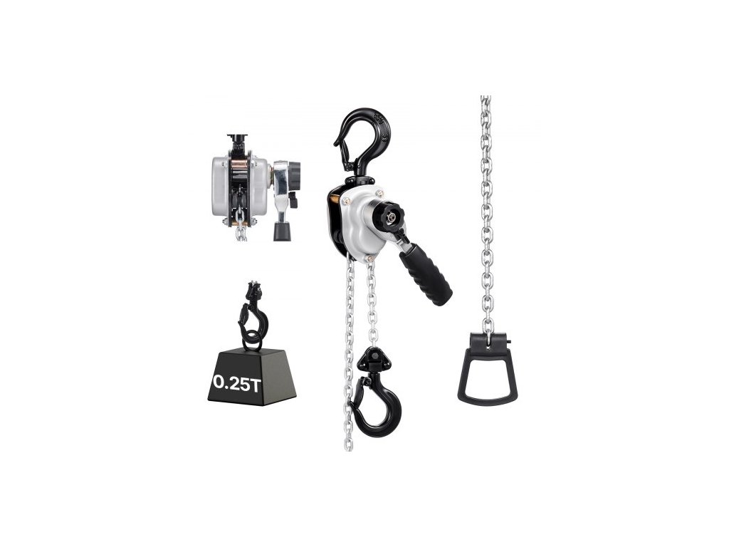 Ruční pákový řetězový kladkostroj VEVOR, nosnost 1/4T 250KG, pro vysoké zatížení, zdvih 1,5M, řetěz z legované oceli G80 s dvojitou západkou, mechanická brzda, háky otočné o 360°, pro sklady, stavebnictví, garáže