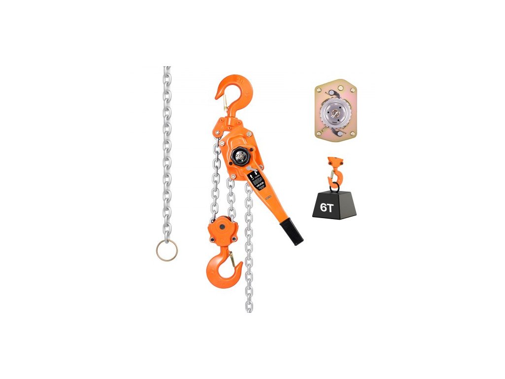 Ruční pákový řetězový kladkostroj VEVOR, nosnost 6T 6000KG, pro vysoké zatížení, řetěz z legované oceli 3M Lift G80 s dvojitou západkovou mechanickou brzdou, háky otočné o 360°, pro sklady, stavby, garáže