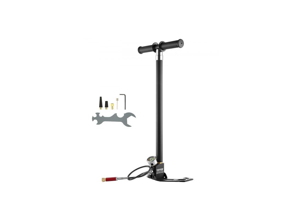 Ruční pumpa VEVOR PCP, 4stupňová, 30Mpa 4500 PSI, vysokotlaká, třmenová pumpa pro plnění vzduchovek PCP s olejovým filtrem a manometrem, nerezová ocel pro vzduchovky, potápěčské lahve, plnění pneumatik a paintballových lahví