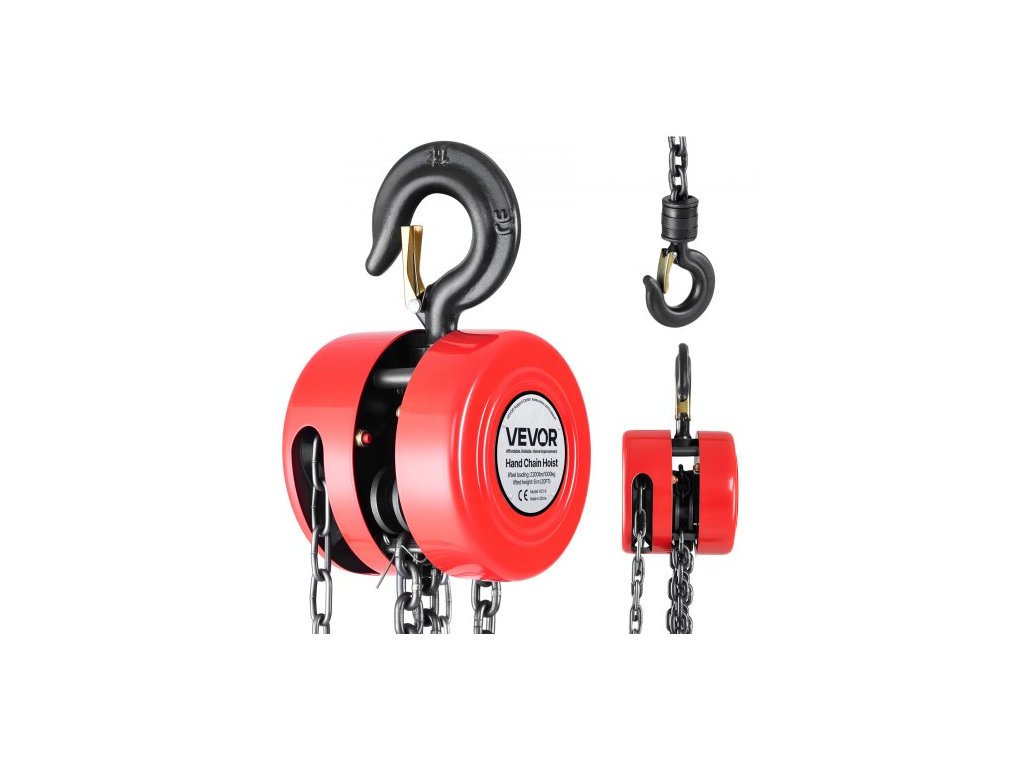 Ruční řetězový kladkostroj VEVOR, nosnost 1 tuna, ruční řetězový kladkostroj s vylepšeným pozinkovaným řetězem G70, výška zdvihu 6 m, kladkostroj pro těžké provozy v garážích, skladech, automobilových strojích, červený