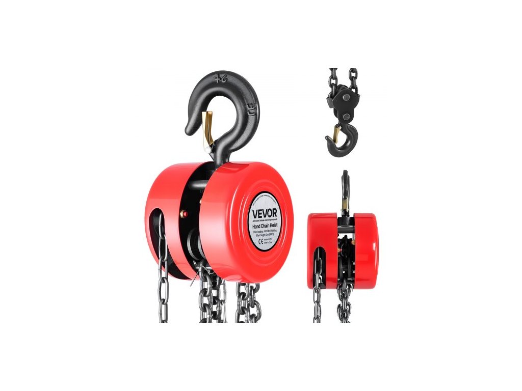 Ruční řetězový kladkostroj VEVOR, nosnost 2 tuny, ruční řetězový kladkostroj s vylepšeným pozinkovaným řetězem G70, výška zdvihu 3 m, kladkostroj pro těžké provozy v garážích, skladech, automobilových strojích, červený