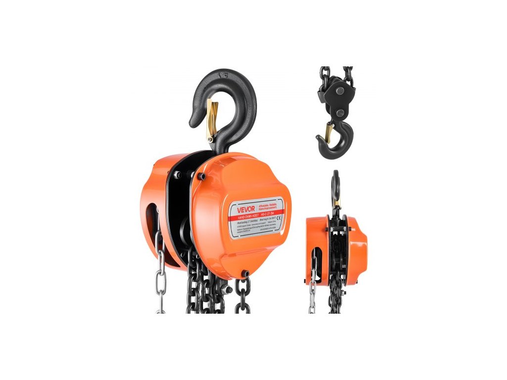 Ruční řetězový kladkostroj VEVOR, nosnost 2 tuny, ruční řetězový kladkostroj s vylepšeným pozinkovaným řetězem G80, výška zdvihu 3 m, kladkostroj pro těžké provozy v garážích, skladech, automobilových strojích, oranžová