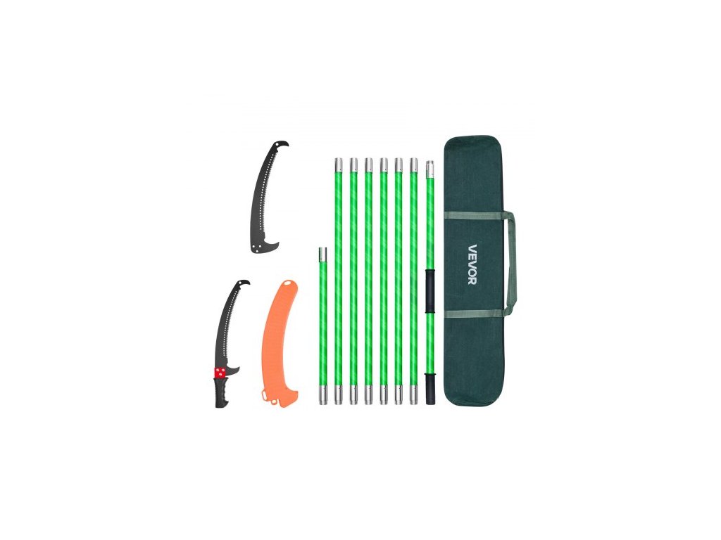 Ruční tyčová pila VEVOR, výsuvné nůžky na stromy s tyčí 118–809,3 cm, ostrý čepel z oceli 65Mn, lehká rukojeť ze sklolaminátu, dvojitá pila pro prořezávání vysokých větví, prořezávací nástroj pro palmy a keřeSklolaminátová tyč