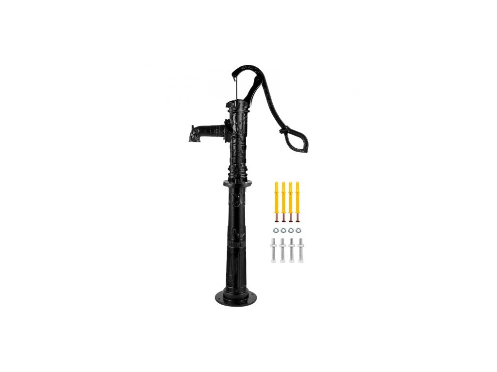 Ruční vodní čerpadlo VEVOR se stojanem, džbánové čerpadlo 40 x 23,9 x 135 cm (15,7 x 9,4 x 53,1 palce) a stojan na čerpadlo 66 cm (26 palců) s přednastavenými otvory 12,7 mm (1/2") pro snadnou instalaci, rustikální litinové čerpadlo do studny pro zahradu, dvůr a farmu, černéVintage džbán čerpadlo