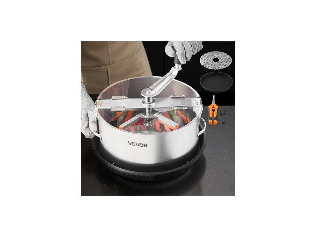 Ruční zastřihovač listů VEVOR, 300mm miska na zastřihovač pupenů s čepelemi z nerezové oceli, vizuální řezání, hydroponický řezací stroj pro mokré i suché pěstování s miskou, kroucené rotační řezání pro pupeny a květy rostlin