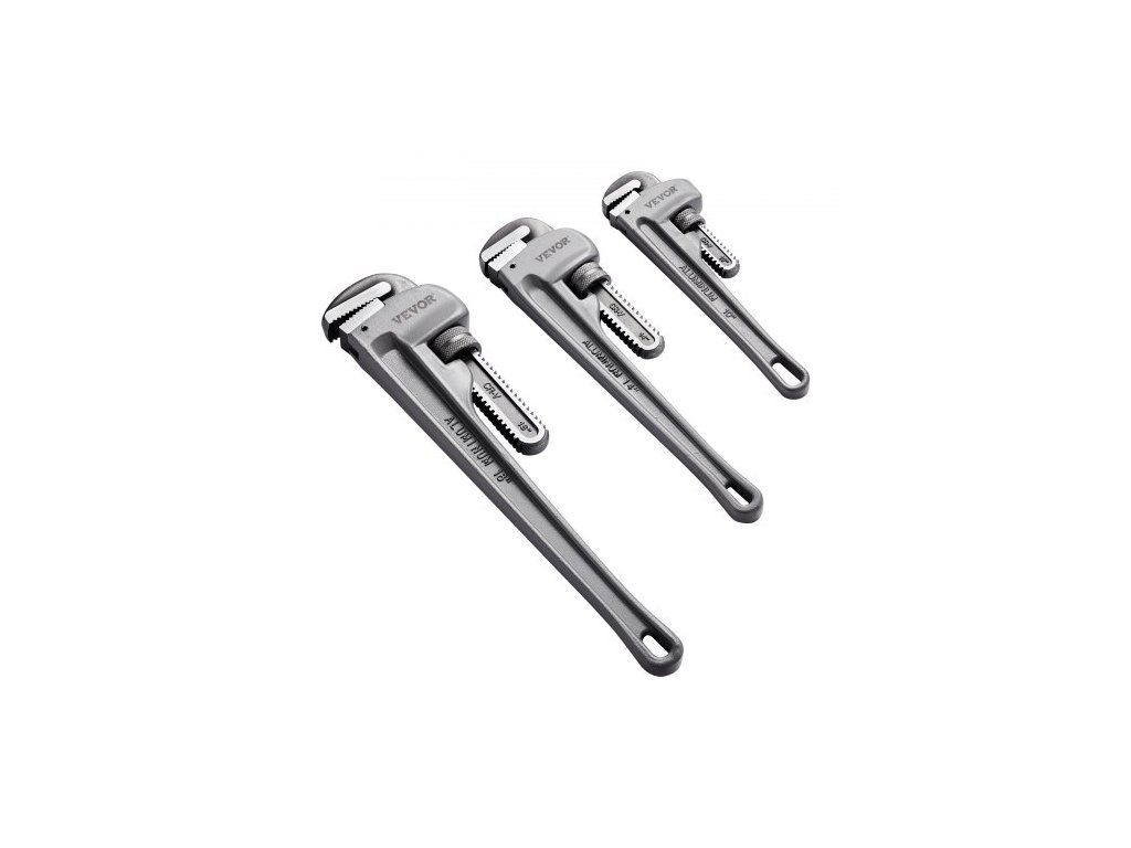 Sada 3 hasáků VEVOR, hliníkový rovný hasák 10", 14", 18", nastavitelný instalatérský klíč, s vysoce pevnou čelistí a ergonomickou rukojetí, závěsný design, pro vodovodní potrubí, opravy automobilůLehký design
