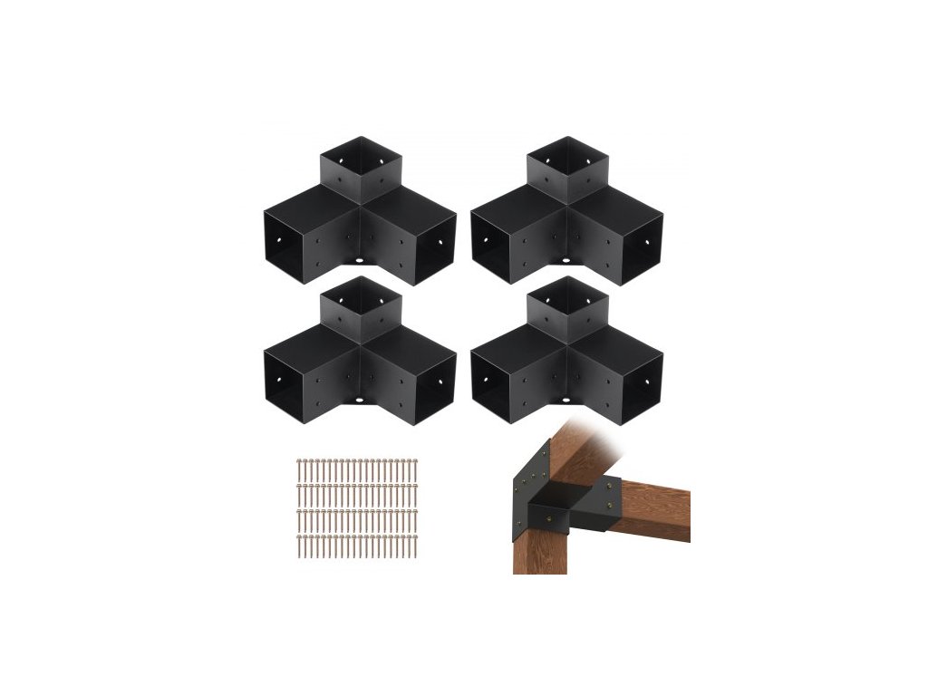Sada držáku pergoly VEVOR 4''x4'', vnitřní velikost 3,6" x 3,6 4ks 3-cestný rohový držák pro těžký provoz Woodworks Sada základny sloupků pro kutily, snadná instalace Dřevěné trámy pro altány, terasové pergoly, kování pro venkovní pergoly srubůVysoce kvalitní držáky pergol