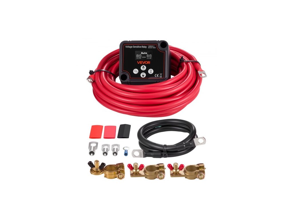 Sada duálního izolátoru baterie VEVOR, 12V 140A, manuální a automatické relé VSR citlivé na napětí s voltmetrem, LCD displej, inteligentní izolátor baterie, kompatibilní s olověnými bateriemi, pro UTV a ATVVysoká kompatibilita