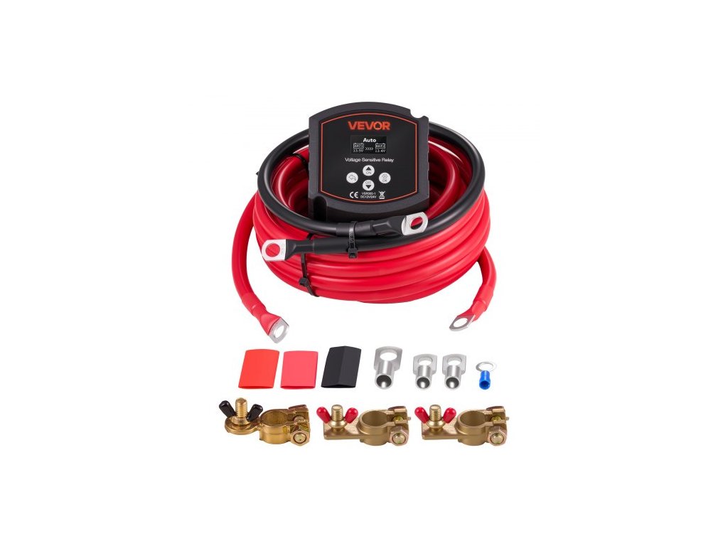 Sada duálního izolátoru baterie VEVOR, 12V 300A, manuální a automatické napěťově citlivé relé VSR s voltmetrem, LCD displej, inteligentní izolátor baterie, kompatibilní s olověnými bateriemi, pro UTV a ATVVysoká kompatibilita