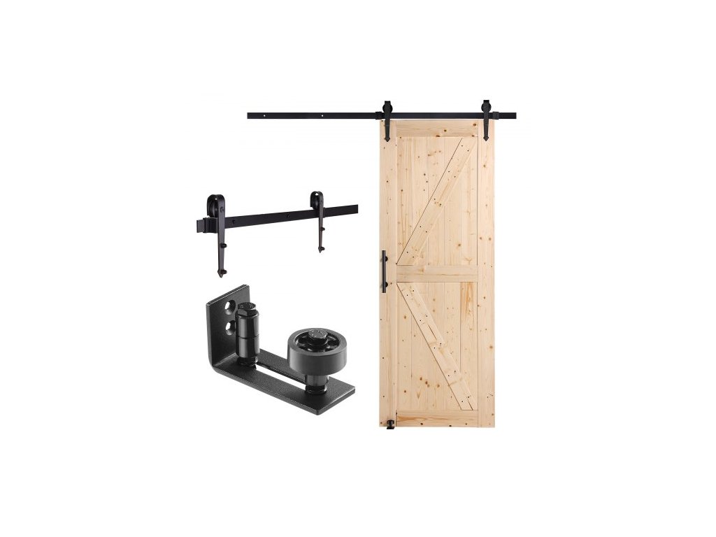 Sada dveří a kování VEVOR pro stodolu, dřevěné posuvné dveře do stodoly 30" x 84", hladce a tiše se otevírající, sada dveří do stodoly s podlahovým vedením a klikou 8 v 1, obložená smrková deska, snadná instalace