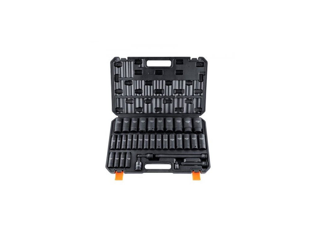 Sada hlubokých rázových nástrčných klíčů VEVOR 1/2" Drive, 34dílná sada nástrčných klíčů, metrické (8-36 mm), 6hranná Cr-MO legovaná ocel pro opravy automobilů, robustní konstrukce, včetně odolného úložného pouzdra.Robustní a odolný