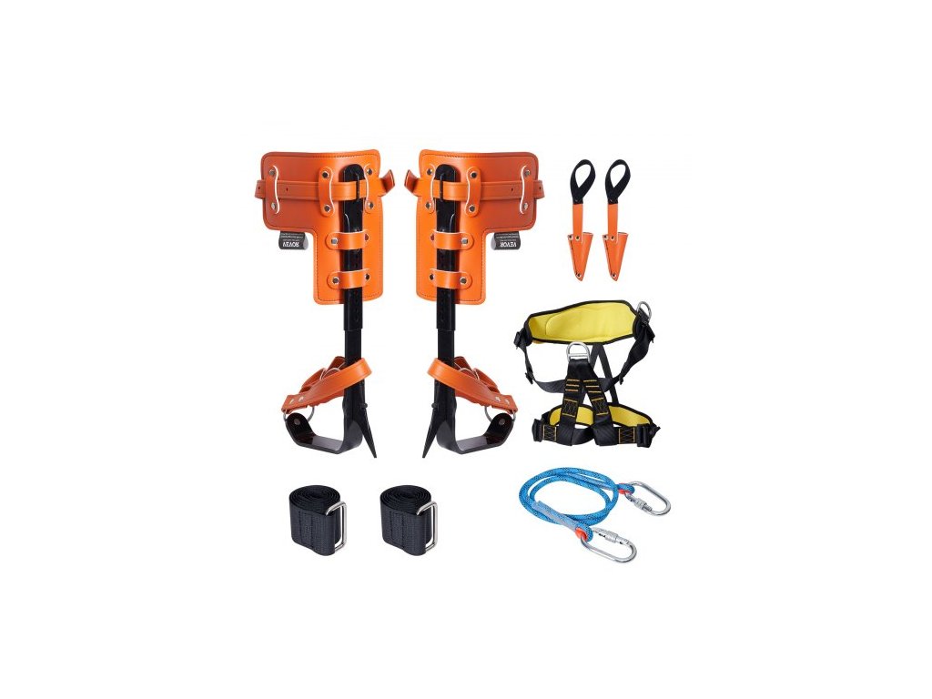 Sada hřebů na lezení po stromech VEVOR, 1 pár lezeckých ostruh z legované oceli s bezpečnostním lanem a bezpečnostním postrojem, nosnost 150 kg, vybavení pro arboristy a horolezce, sběr ovoce, oranžováSložení produktu