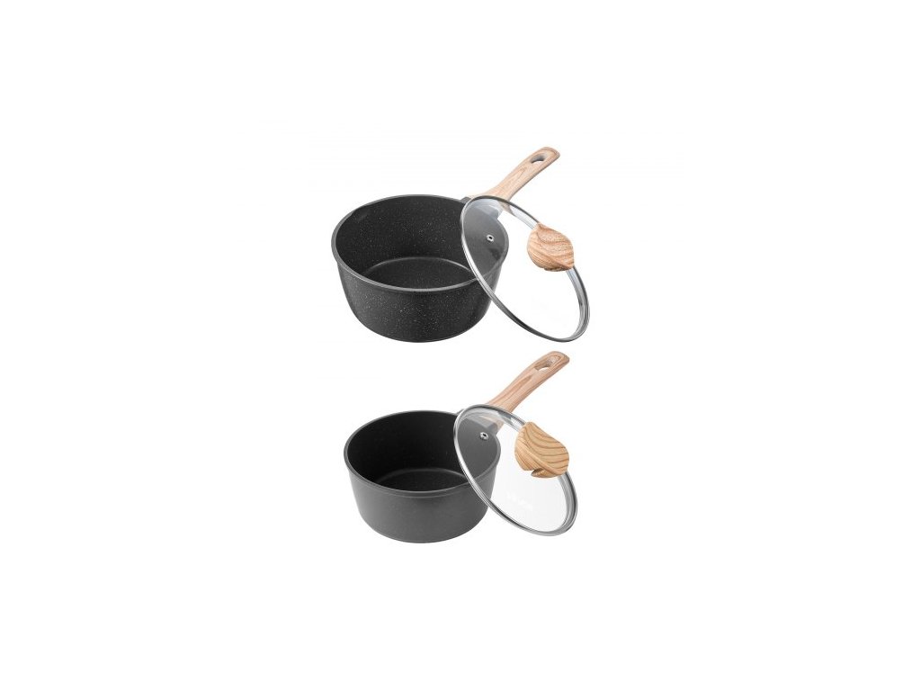 Sada hrnců VEVOR, nepřilnavý hrnec 1,5 qt a 2,5 qt se skleněnými poklicemi, víceúčelové hrnce na omáčku s odnímatelnými rukojeťmi, hrnec na omáčku s povrchovou úpravou, kompatibilní s indukcí, černáVíceúčelový hrnec