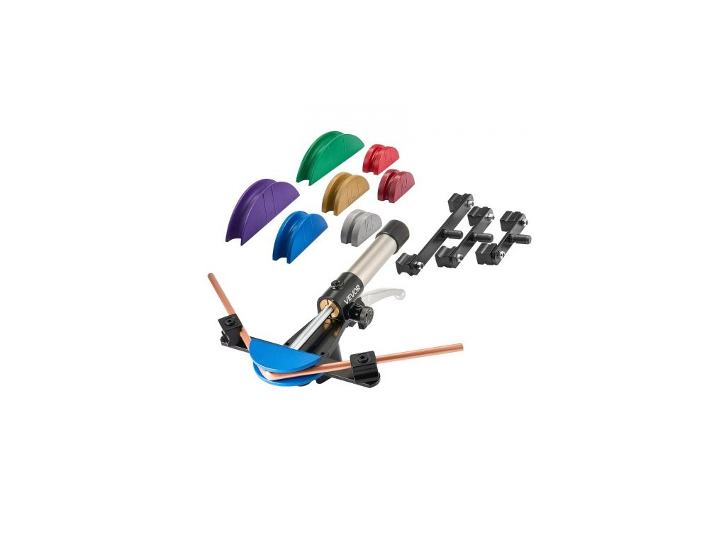 Sada hydraulických ohýbaček trubek VEVOR, 6 mm až 22 mm, ohýbačka měděných trubek, sada nástrojů pro ohýbání trubek HVAC, ohyb 90°, se 7barevnými hliníkovými slitinovými matricemi, pro opravy automobilů, HVAC, klimatizace, chlazení a klimatizace