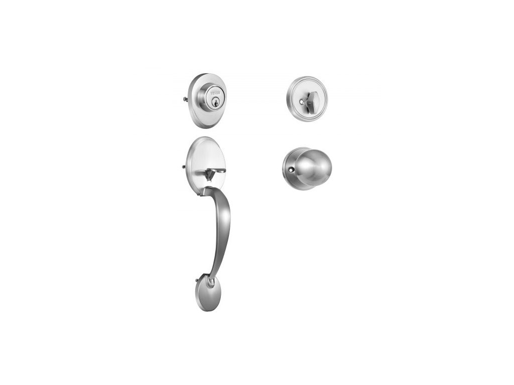 Sada kliky a závory pro vchodové dveře VEVOR, sada zámků pro vchodové dveře v saténově niklovém provedení s vnitřní klikou, nastavitelná rozteč otvorů, klika s jednou cylindrickou vložkou, pro praváky i leváky vchodové a hlavní dveře