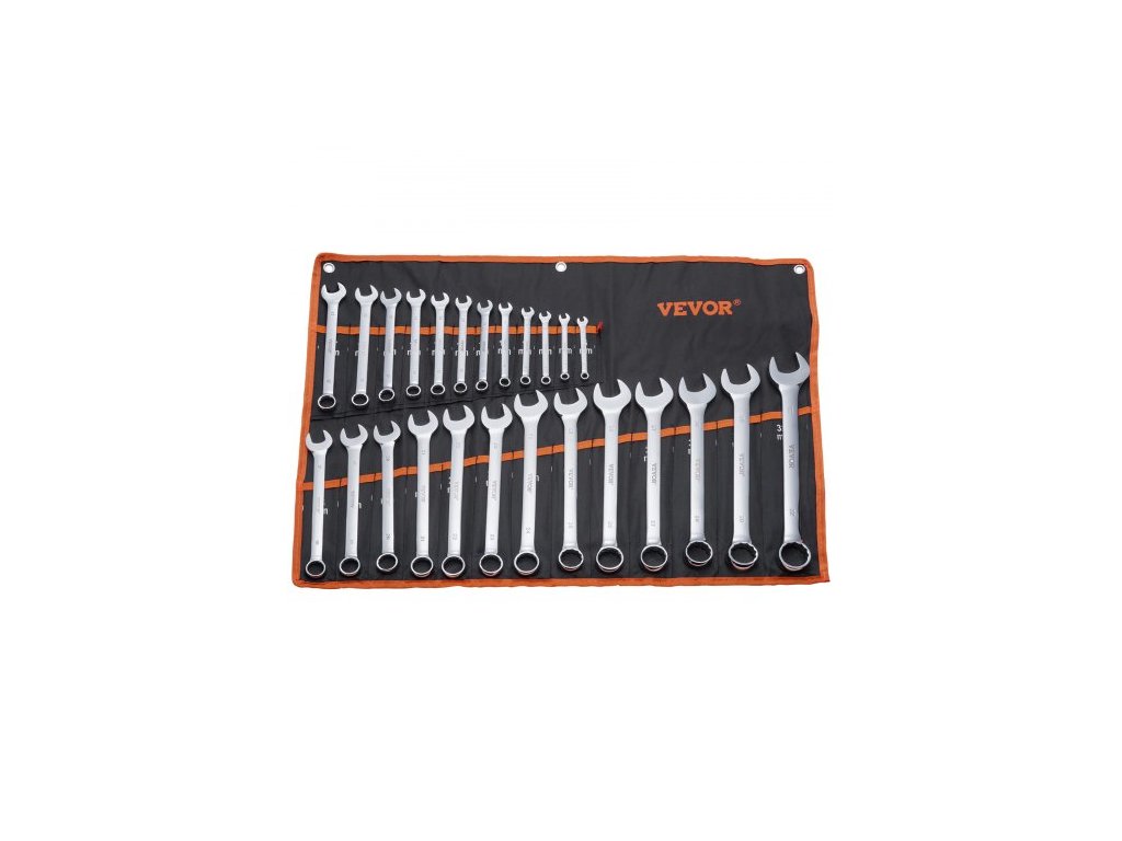 Sada kombinovaných klíčů VEVOR, 25dílná sada otevřených klíčů s rolovacím pouzdrem, sada klíčů z uhlíkové oceli, metrické 6 mm až 32 mm, ideální pro běžnou domácnost, garáž, dílnu, autoservisy, nouzové situace