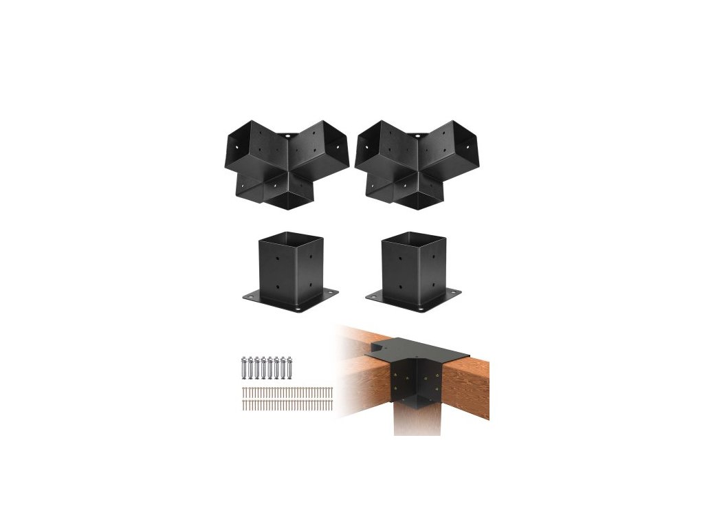 Sada konzolí pro pergolu VEVOR, 4x4 palce (vnitřní rozměr 92 x 92 mm), 2 ks 4cestných robustních rohových konzolí, sada pro výrobu sloupků pro kutily, snadná instalace, dřevěné trámy pro altány, zahradní pergoly, sruby