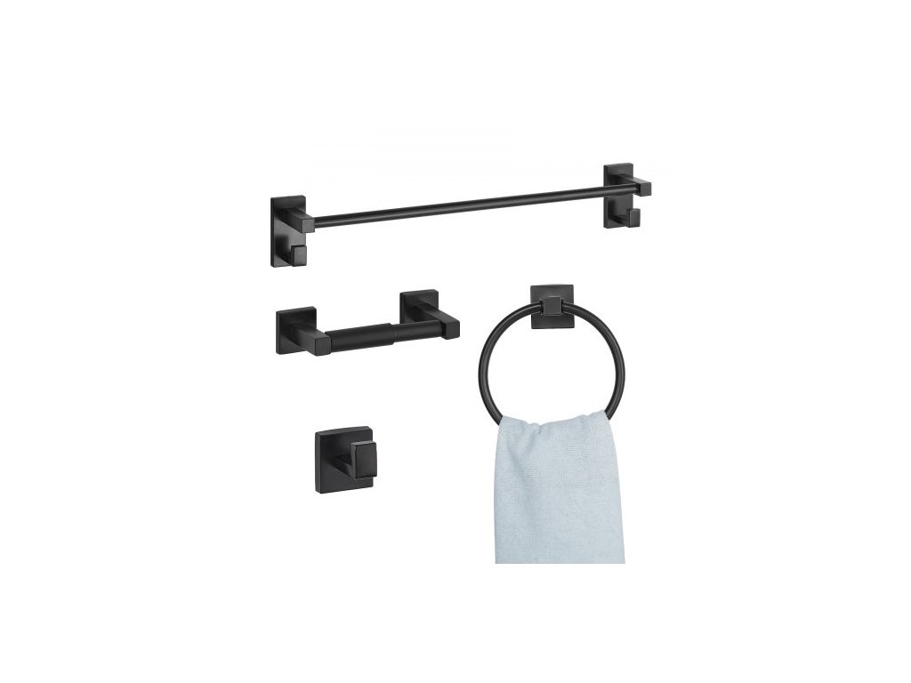 Sada koupelnového kování VEVOR v matně černé barvě, 4dílná sada koupelnových doplňků z nerezové oceli, držák na ručníky 24 palců, kroužek na ručníky, háček na župan, držák toaletního papíru, do koupelny, nástěnná montážSada koupelnových doplňků