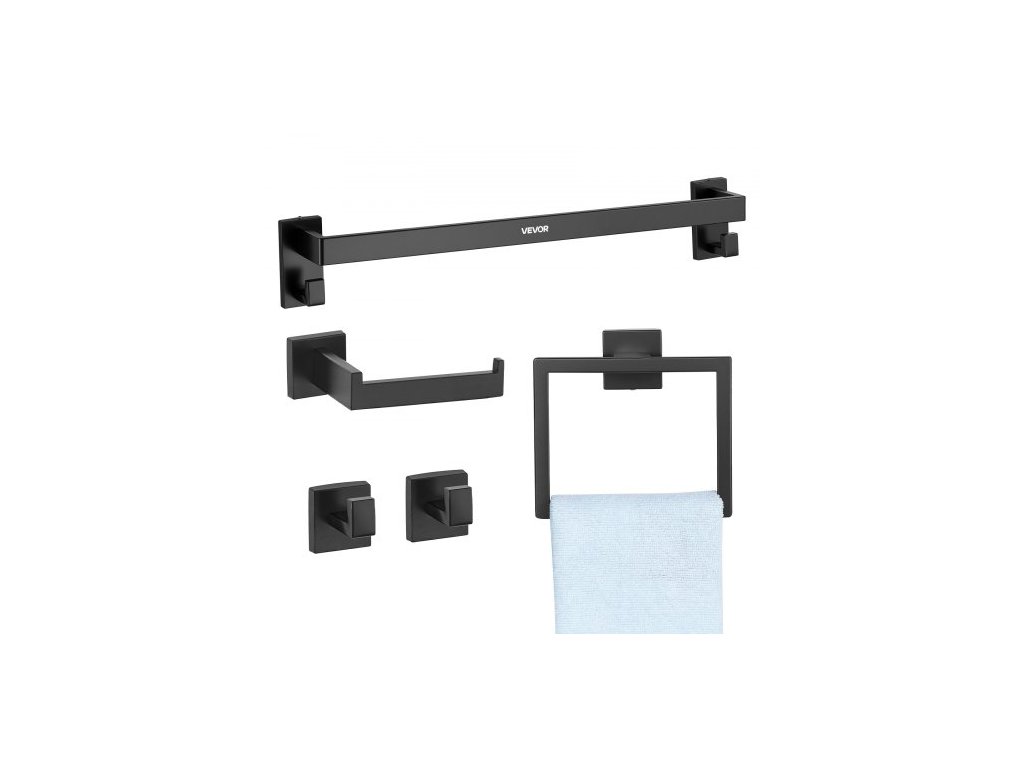 Sada koupelnového kování VEVOR v matně černé barvě, 5dílná sada koupelnových doplňků z nerezové oceli, držák na ručníky 24 palců, věšák na ručníky, 2 háčky na župany, držák toaletního papíru, do koupelny, nástěnná montáž