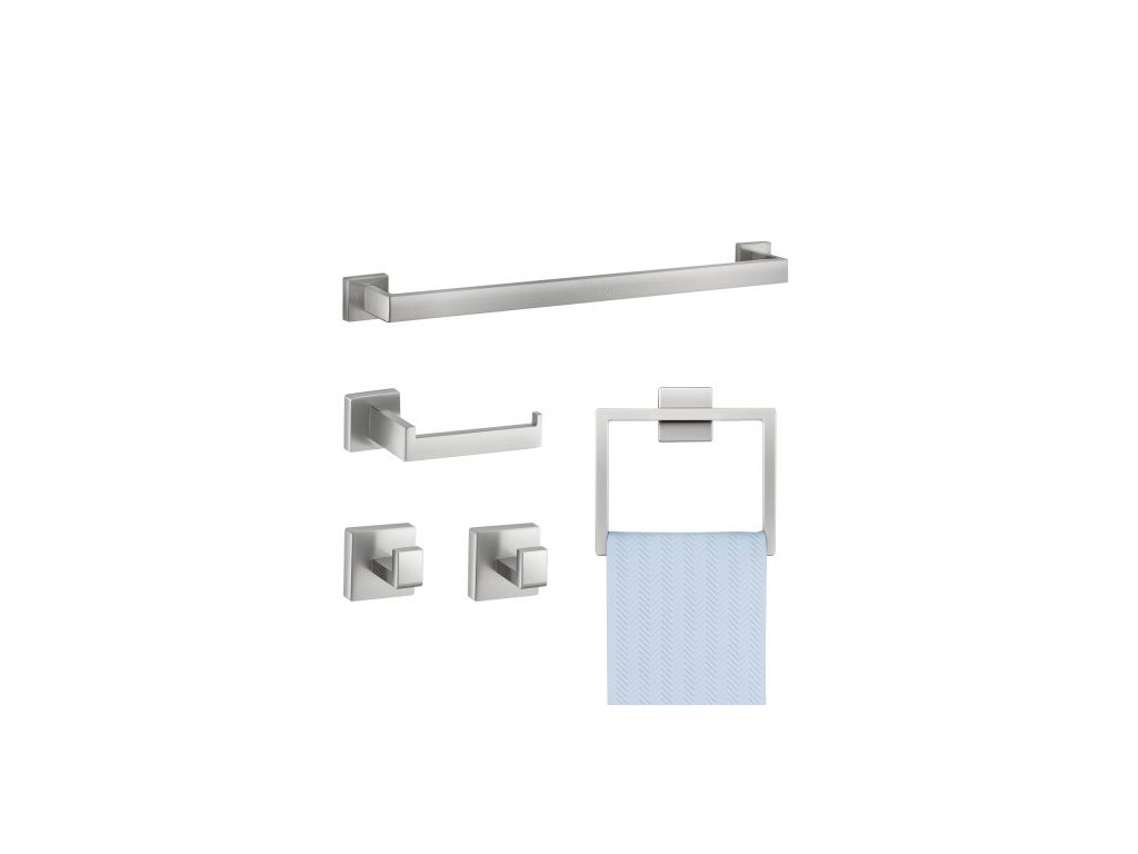 Sada koupelnového kování VEVOR z kartáčovaného niklu, 5dílná sada koupelnových doplňků, držák na ručníky z nerezové oceli 24 palců, věšák na ručníky, 2 háčky na župany, držák toaletního papíru do koupelny, nástěnná montážSada koupelnových doplňků