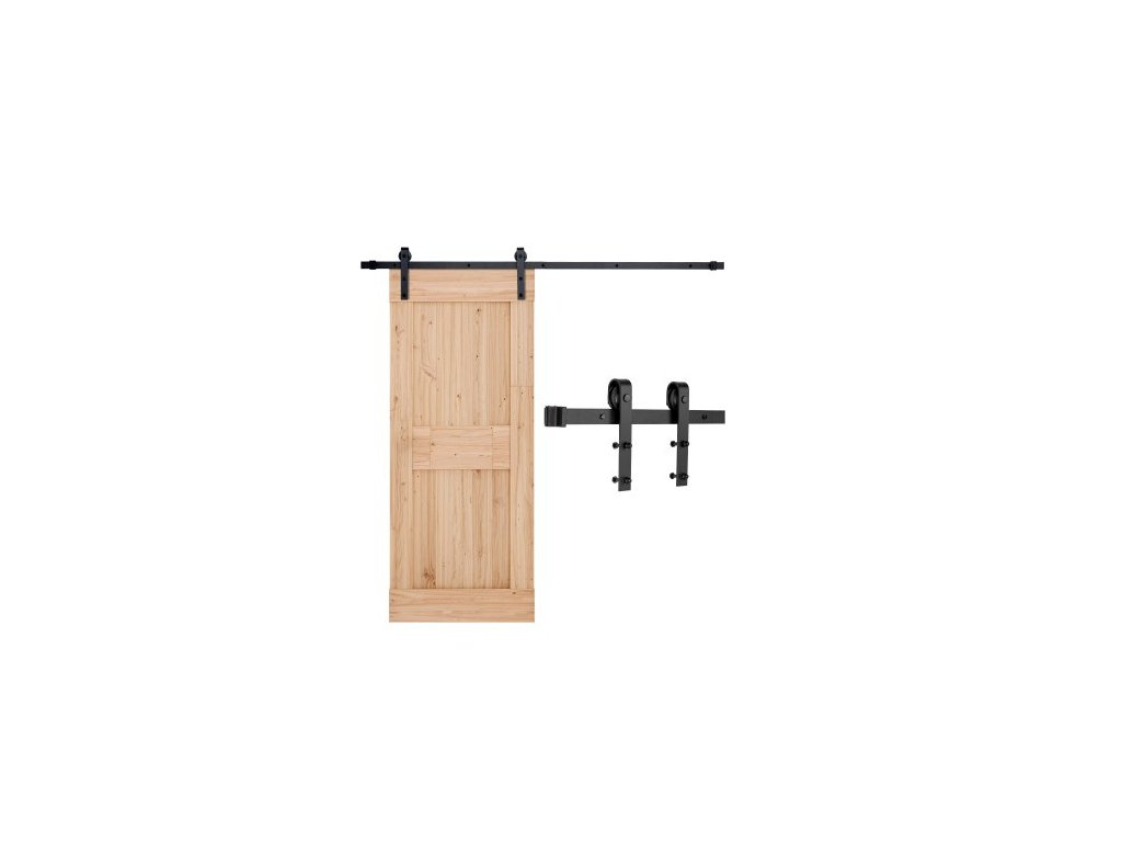 Sada kování pro posuvné dveře stodoly VEVOR 6FT, nosnost 330 LBS, kompatibilní s jednoduchými posuvnými dveřmi stodoly o maximální šířce 36 palců a tloušťce 1-3/8 až 1-3/4 palce, odolná kolejnice a váleček ve tvaru J, černá