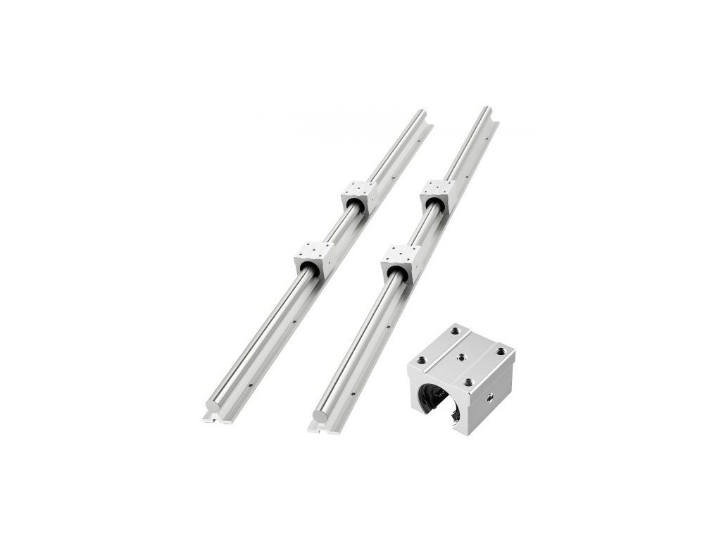 Sada lineárních kolejnic VEVOR, SBR25, 2 ks lineárních vodicích kolejnic 1200 mm (47,24 palce) a 4 ks ložiskových kluzných bloků, plně podepřená hřídel, pro řezací, brousicí, frézovací, vrtací stroje a další