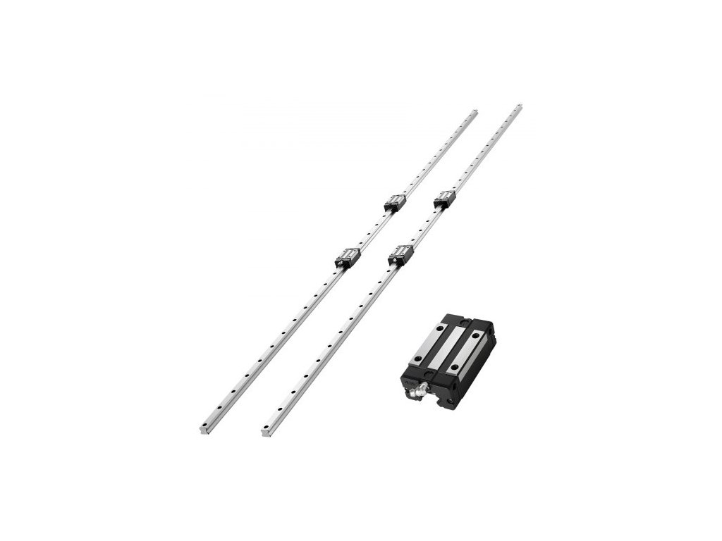 Sada lineárních vodicích lišt VEVOR, HGR20, 2 kusy lineárních lišt 2000 mm (78,74 palce) a 4 kusy ložiskových kluzných bloků, odolná proti korozi a vysoce přesná sada, pro kutily, CNC frézky, soustruhy, frézky, 3D tiskárnyKompletní sada lineárních vodicích lišt