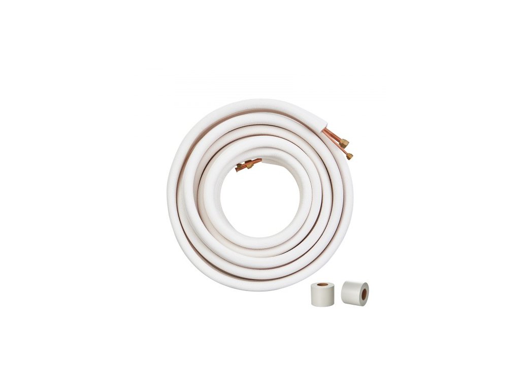 Sada mini dělených potrubí VEVOR 15240 mm, měděné trubky o vnějším průměru 6,4 a 12,7 mm a třívrstvá izolace, pro mini split klimatizaci, chladicí nebo topná čerpadla a zařízení HVAC s balicími páskami.