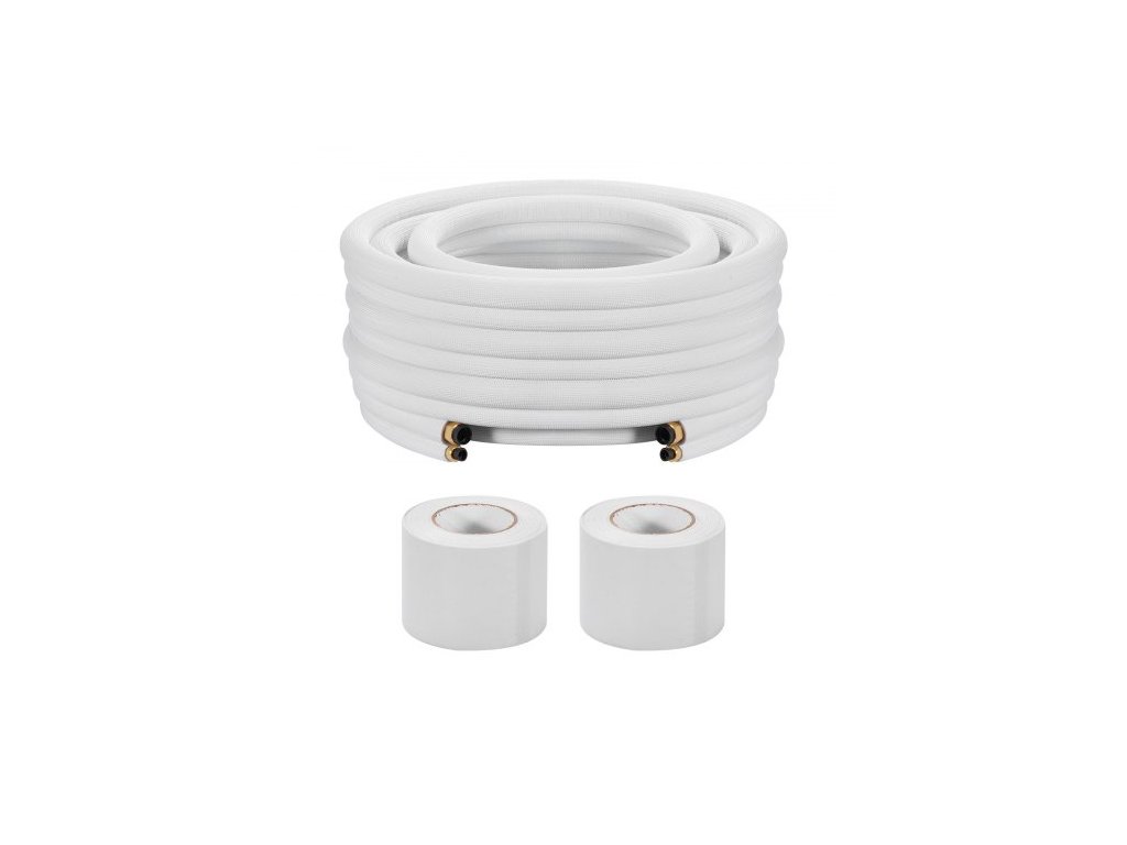Sada mini splitového potrubí VEVOR 30,5 m, měděné trubky pro střídavý proud o vnějším průměru 9,5 a 15,9 mm, bílá PE zesílená izolovaná spirála 3/8 s rozšířenými maticemi, stahovací pásky, pro mini split klimatizaci, HVAC nebo tepelné čerpadlo