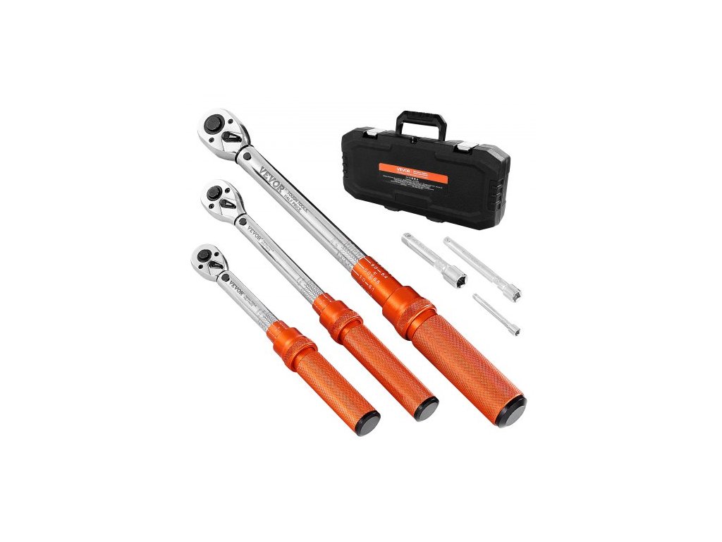 Sada momentových klíčů VEVOR Click, 3 kusy, pohon 1/4, 3/8, 1/2 palce, 10–170 lbf-ft, 5–45 lbf-ft, 20–240 lbf-in, stupnice s dvojitým směrem a dvojitým rozsahem, 72 zubů, vysoká přesnost ±3 %, pro opravy jízdních kol±3% Vysoká přesnost