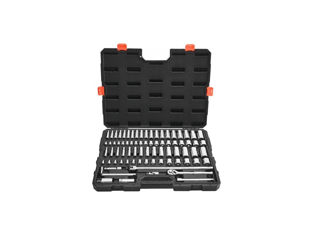 Sada nástrčných klíčů VEVOR, 76 kusů, sada nástrčných klíčů a ráčny 9,5 mm, SAE a metrické, hluboké a mělké, sada nářadí pro mechaniky s příslušenstvím a úložným pouzdrem, legovaná ocel CR-V, pro opravy automobilůSada prémiových nástrčných klíčů