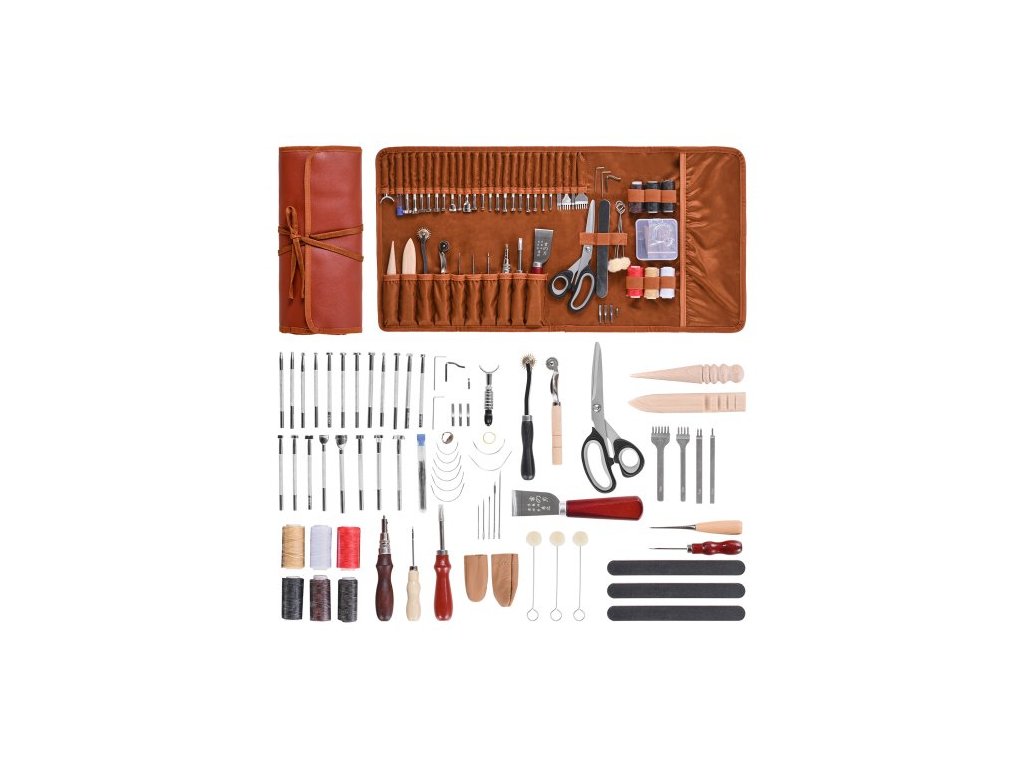 Sada nástrojů VEVOR pro práci s kůží, 72 ks nástrojů pro kožené řemeslo s přenosnou koženou úložnou taškou, gravírování, děrování, šití, ražení, brusné nástroje, ideální pro začátečníky, kutily a profesionálySada nářadí vše v jednom