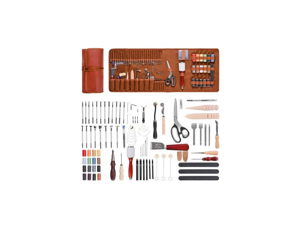 Sada nástrojů VEVOR pro práci s kůží, 92 ks nástrojů pro kožené řemeslo s přenosnou koženou úložnou taškou, gravírování, děrování, šití, ražení, brusné nástroje, ideální pro začátečníky, kutily a profesionálySada nářadí vše v jednom