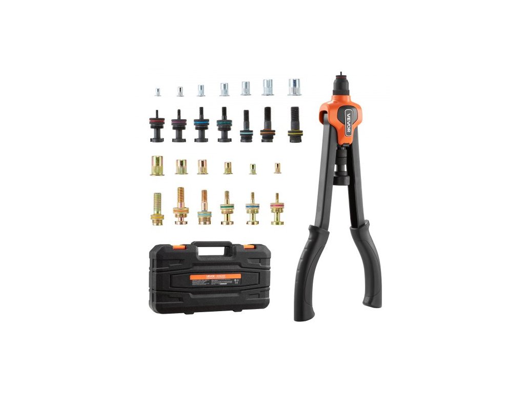 Sada nýtovacích nářadí VEVOR, sada nýtovacích nářadí 420 mm, s 13 trny a 130 maticemi, metrické a SAE velikosti M3, M4, M5, M6, M8, M10, M12, 1/2-13, 8-32, 10-24, 1/4-20, 5/16-18, 3/8-16 UNC, v přepravním pouzdře.Připraveni na vaše opravy a projektové potřeby