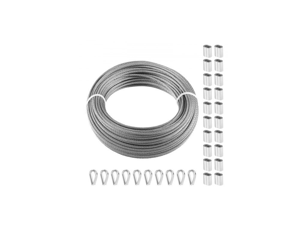 Sada ocelových lan VEVOR, 1/8" 100 ft lano z nerezové oceli 316 s 20 návleky a 10 očnicemi, pevnost v tahu 1600 lbs, 7x7 pramenů, námořní letecká třída pro zábradlí, schodiště, terasu, plot, venkovní použití