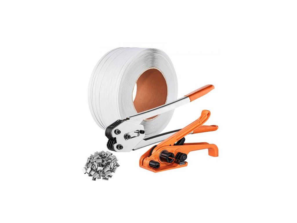 Sada páskovacích pásek VEVOR s nástrojem na napínání pásek, nástroj na utěsnění pásek, PP páska o délce 328 stop, 100 kovových těsnění, sada páskování na palety, páska na páskování pro baleníBez námahy Efektivní