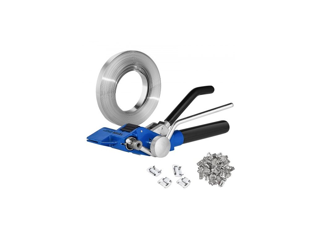 Sada páskování VEVOR s napínačem pásky, páskování z nerezové oceli 304 o délce 30 m, 100 kovových těsnění, sada pro páskování palet, páskování a páskování pro balení