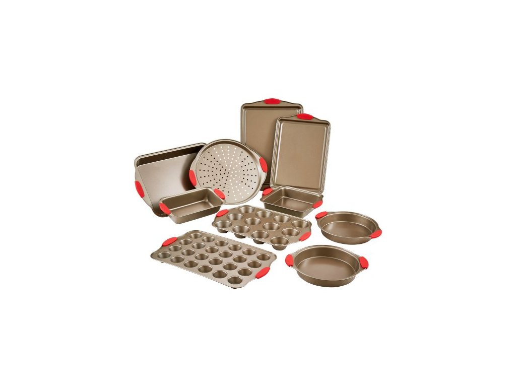 Sada pekáčů VEVOR, 10dílná, nepřilnavé plechy a tácy z uhlíkové oceli, stohovatelné sady na pečení do kuchyňské trouby se silikonovými rukojeťmi, snadno se čistí, na pečení sušenek, dortů, muffinů