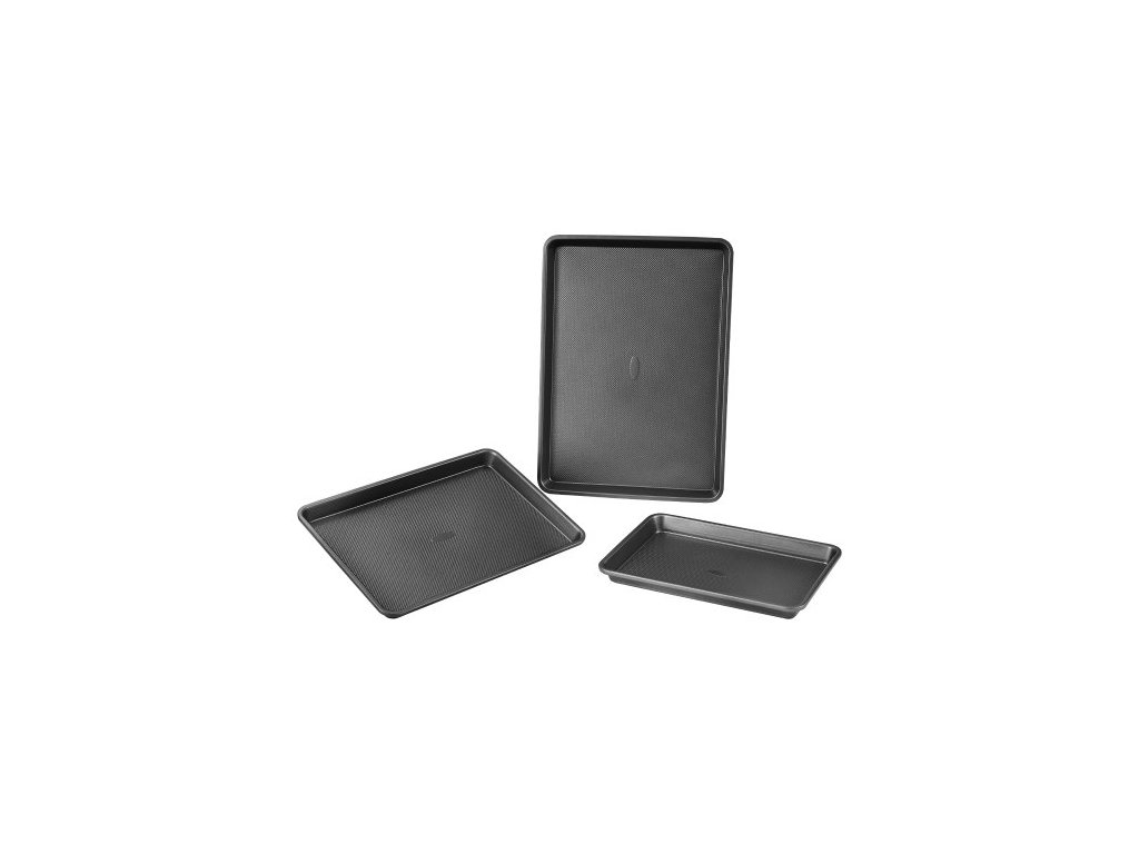 Sada pekáčů VEVOR, 3dílná, nepřilnavé plechy a tácy z uhlíkové oceli, stohovatelné sady na pečení do kuchyňské trouby se silikonovými rukojeťmi, snadno se čistí, na pečení sušenek, dortů, muffinůNezbytnost pro domácí pečení