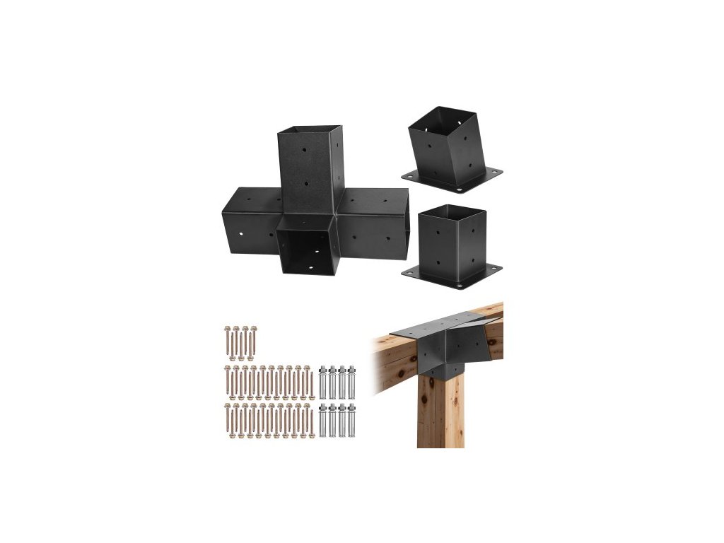 Sada pergoly VEVOR, 4cestný šikmý držák 4x4 palce pro dřevěné nosníky 92 x 92 mm ve skutečné velikosti, držák pergoly z uhlíkové oceli se základnou sloupku a základnou pro montáž na zeď, pro venkovní pergoly, altány, přístřešky
