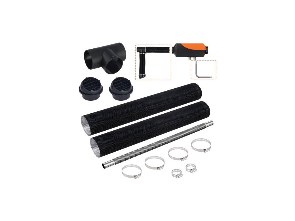 Sada potrubí pro naftové topení VEVOR, 3" prodlužovací vzduchová hadice, 1" výfuková trubka z nerezové oceli, 2 vzduchové průduchy, konektor pro výstup vzduchu ve tvaru T a hadicové svorky, pro 2KW/5KW/8KW dieselová parkovací topení