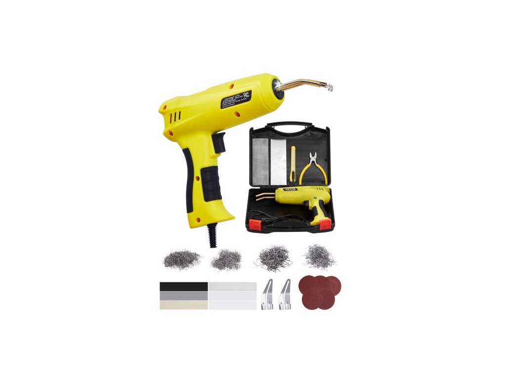Sada pro svařování plastů VEVOR, 220W svářečka na plasty s 800 ks horkých spon a 56 ks svařovacích tyčí, profesionální horká svářečka s LED světlem, přepravní pouzdro na kajak, hračky, opravu nárazníků auta