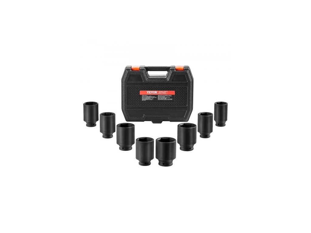 Sada rázových nástrčných klíčů VEVOR na matice nápravy, 1/2" pohon, hluboký, 12hranný, 8dílná metrická sada nástrčných klíčů na vřetenové matice, tepelně zpracovaná sada velkých nástrčných klíčů CR-MO s úložným pouzdrem, opravy automobilů, demontáž…