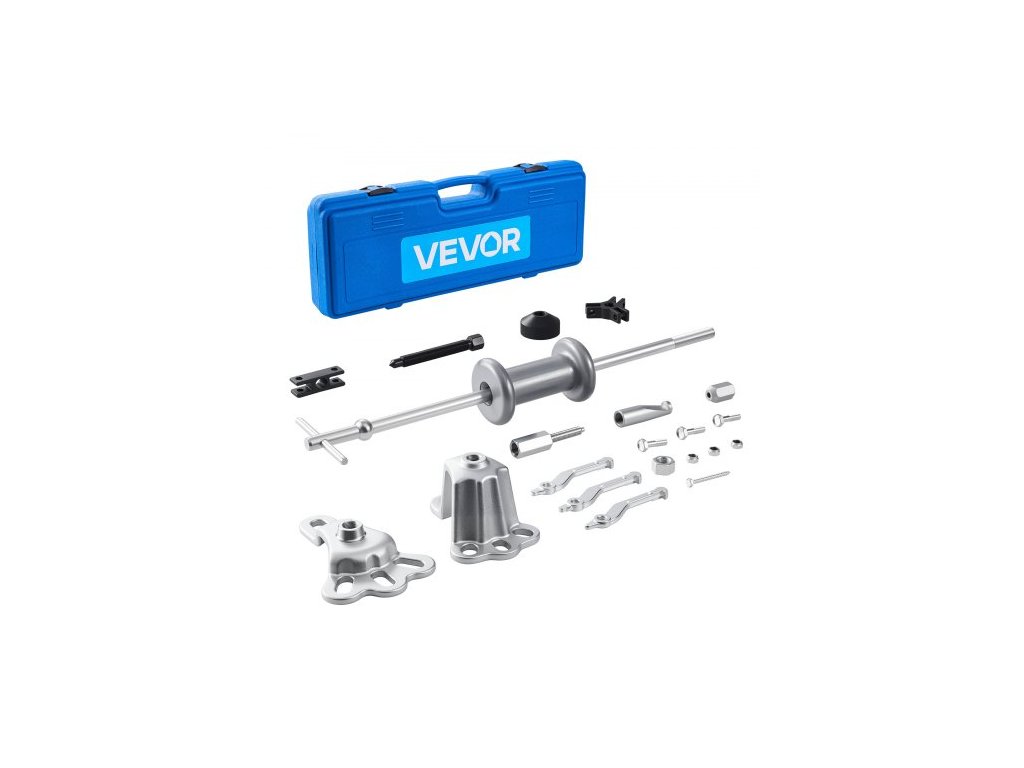 Sada stahováků VEVOR s 9cestným posuvným kladivem, 15dílná sada stahováků ložisek náboje předního kola a stahováků promáčknutých hřídelí náboje zadní nápravy, sada stahováků ložisek nápravy a stahováků s posuvným kladivem s přepravním boxemKompletní úložný prostor pro příslušenství