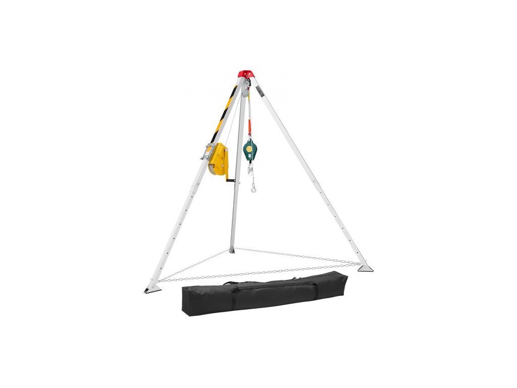 Sada stativu VEVOR pro stísněné prostory, Zdvihací stativ pro těžký záchranný provoz, Naviják 1179 kg, Nastavitelné nohy 1,45 m, Přenosná sada kabelu 30 m, Ochrana proti pádu 10 m, Pracovní výška 1,6–2,45 mHybridní ocelohliníková konstrukce