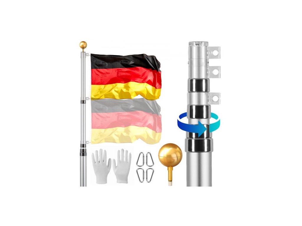 Sada teleskopického stožáru VEVOR 25FT, odolný stožár z hliníkové slitiny do země pro venkovní použití, 3 režimy zobrazení s profesionálním příslušenstvím, německá vlajka, stříbrnáHliníkový stožár z hliníkové slitiny