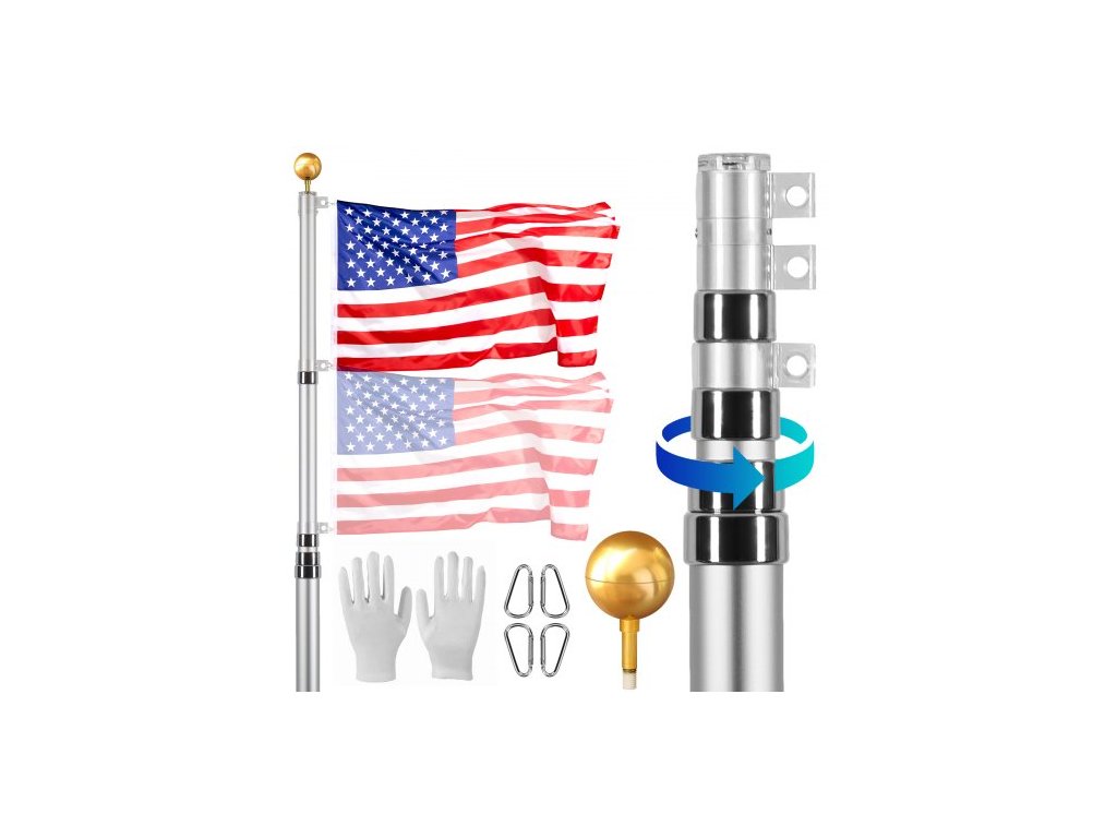 Sada teleskopického stožáru VEVOR 25FT, odolný stožár z hliníkové slitiny do země pro venkovní použití, 3 režimy zobrazení s profesionálním příslušenstvím, stříbrnáHliníkový stožár z hliníkové slitiny