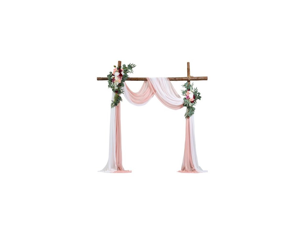 Sada umělých květin VEVOR pro svatební oblouk, růžové květiny pro svatební oblouk se závěsy (balení 4 ks) - 2 ks květinové aranžmá, 2 ks průsvitných závěsů, pro obřadní kytice, dekorace na pozadí recepce