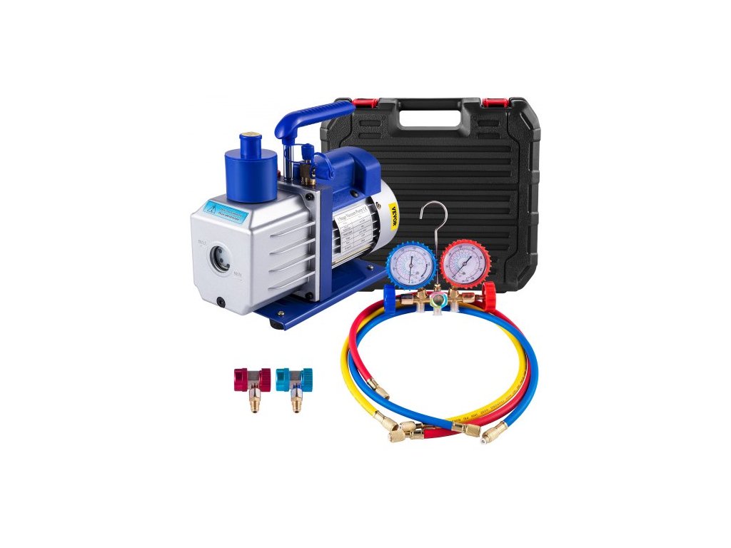 Sada vakuového čerpadla VEVOR, jednostupňové vakuové čerpadlo pro klimatizaci, 283 l/min (4,8 CFM), 246 W (1/3 HP), vzduchové vakuové čerpadlo se 3 ventily, sada měřičů chladiva a klimatizace